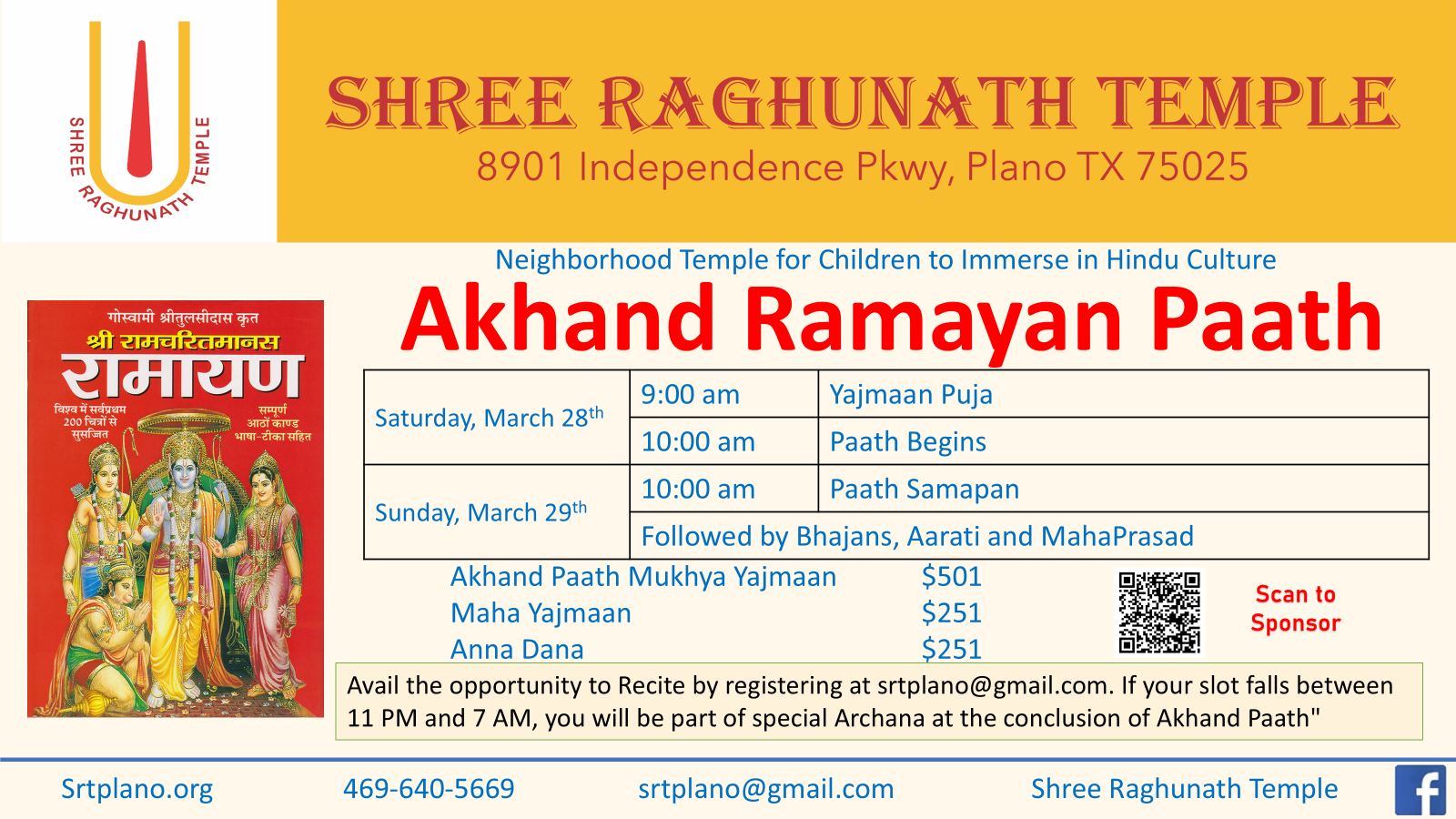 Note: Shree Raghunath Temple is a non-profit organization. All donations made are tax-deductible & non refundable.